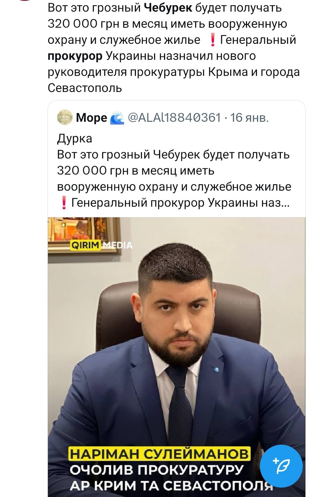 Nariman Suleimanov was recently appointed prosecutor for Crimea and Sevastopol. And social network X (formerly Twitter) is rife with revived abuse.