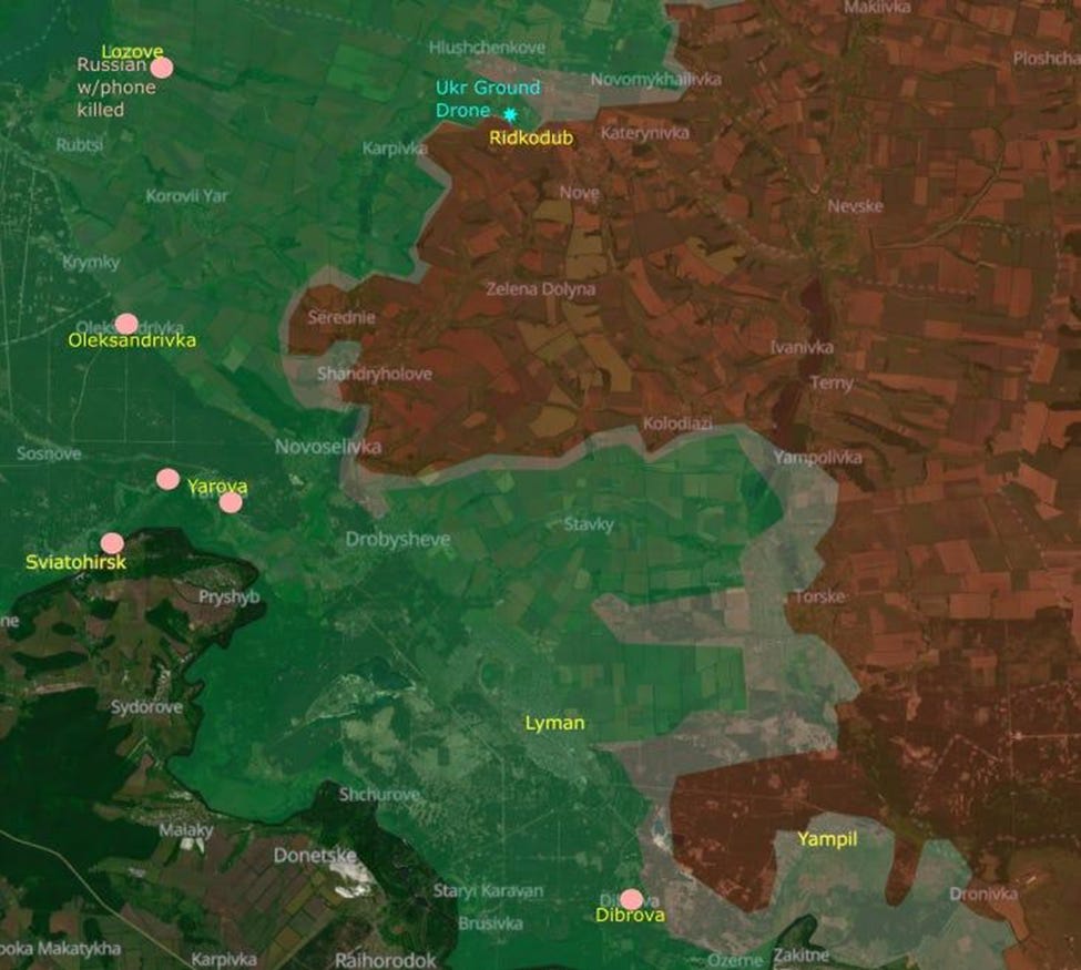 A Russian advanced 10 km before he died in Lozove. Russians in Yarova. Russians in Oleksandrivka. Ukrainians celebrate pushing Russian infiltrators out of Dibrova.