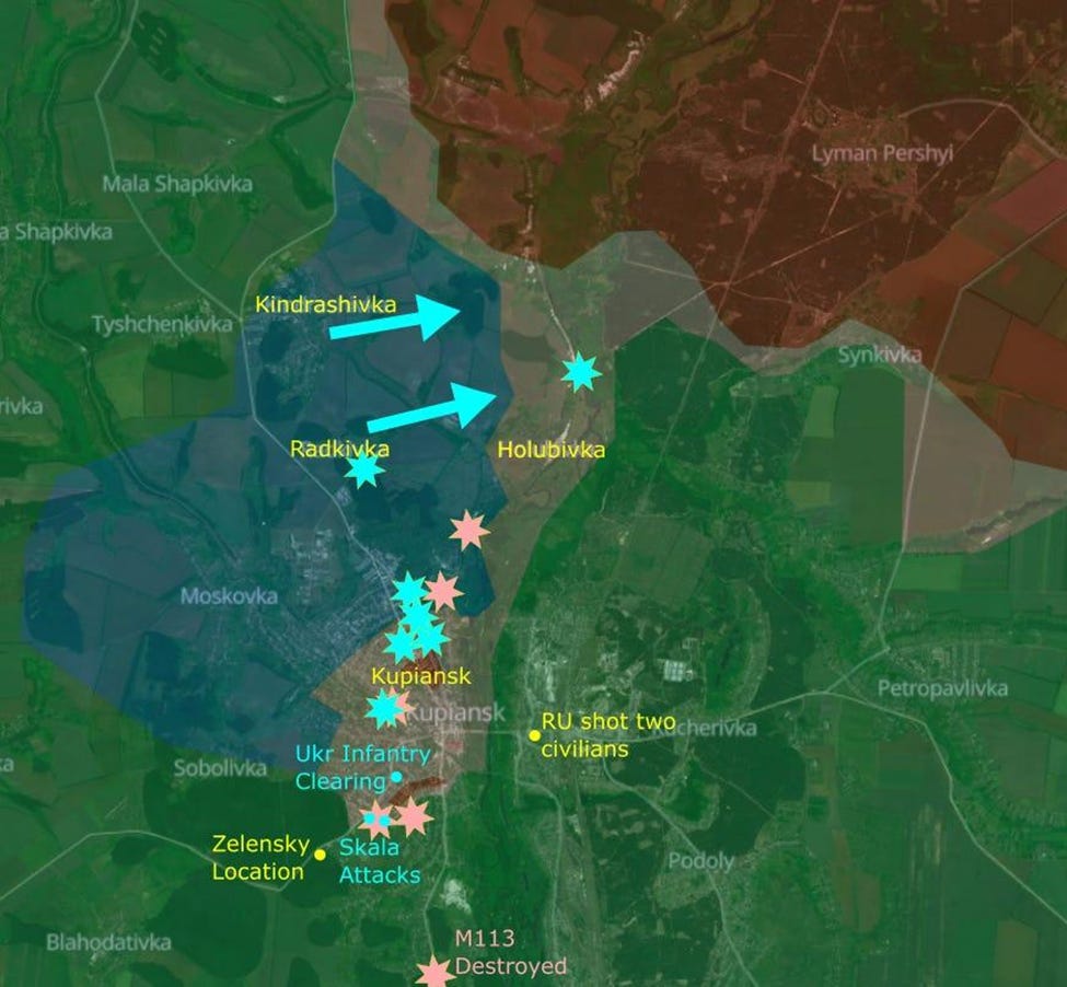 Point is: since the flow of Russians into the city was cut off by the destruction of that pipe, the Russians inside Kupiansk are losing. Any of the estimated 200 Russians that are found in the city are attacked. In turn, the Russians shot two civilians.