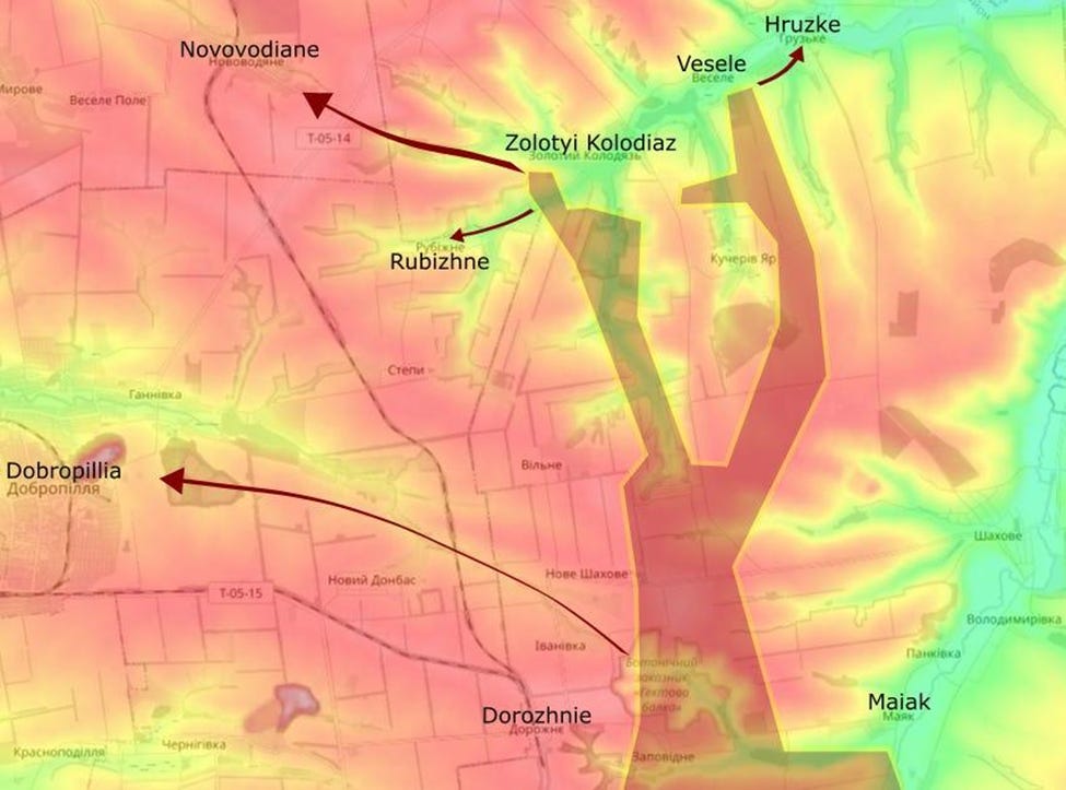 And so it happens that, meanwhile, it’s a ‘standard’ Russian tactic to send small teams to the Ukrainian lines and look for gaps. If they aren’t detected and killed, they keep walking until they are behind Ukrainian lines. Usually, they go for 2-8km before being detected. Usually, they will stop at some point and dig in, waiting for other teams to reach them so they can assemble into a larger force of maybe 10-15 people and attack a specific objective. But, that’s usually… In the case of Pokrovsk, they’ve found a gap between Dorozhnie and Maiak and then called for reinforcements. The Russians then sent the Spetsnaz plus a better part of an entire motor-rifle brigade. In ‘teams’. Through that gap. And, instead of stopping after the usual 2-8km, they kept walking up to 14 km. One route used the low elevations of a water drainage system to reach Zolotyi Kolodiaz. Another route used the high ground to reach Vesele. Some Russians were engaged on the outskirts of Dobropillia...