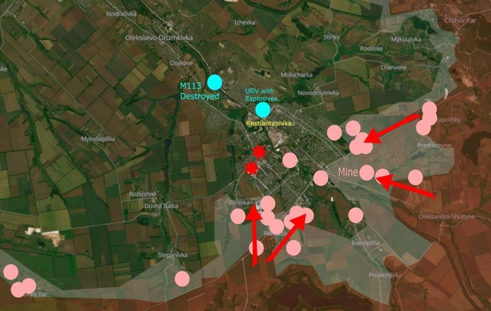 The Russian attacks are relentless because they sense they’ll get a foothold in the city soon. A Ukrainian drone dropes a mine that a Russian later found. A Ukrainian UGV carrying explosives is hit.