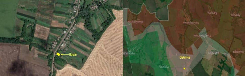 A mixed team of five soldiers from the 103rd Territorial Defense Brigade and a Border Guards unit were dropped off at the southern edge of Oleksiivka. Four entered the basement adjacent to a destroyed house but the fifth was separated and eventually made his way back to safety. Russians went by their house and Russian drones flew overhead. From concealed positions in the nearby woods they would engage the drones with single shots, using an average of three shots to down them. They would use single shots to kill Russians.