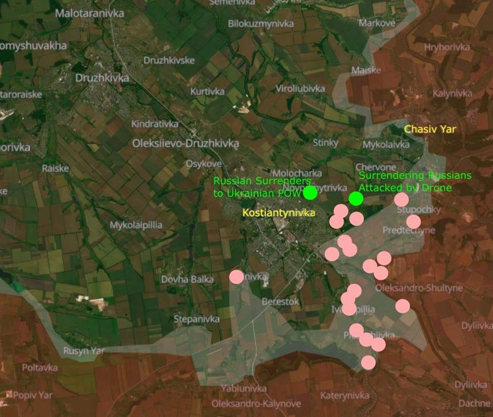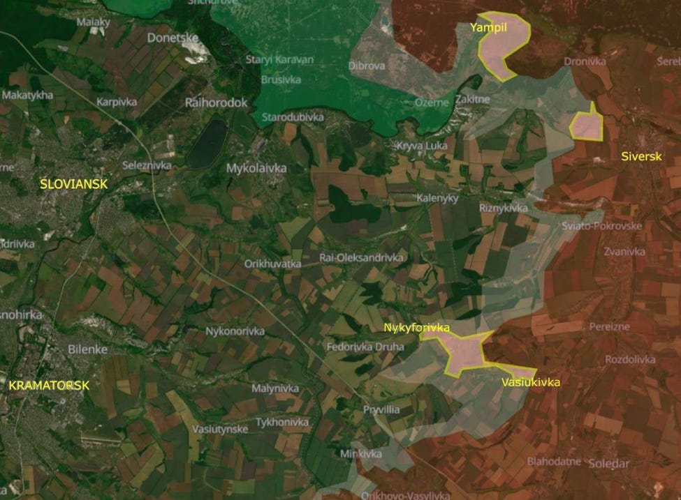 The (much-announced, at least in Russia) biiiiiiiiiig offensive didn’t really take place. Indeed, there was no movement north of Sumy. As mentioned a week ago, though: there has been a slowly increasing Russian incursion 45 km southeast of Sumy.