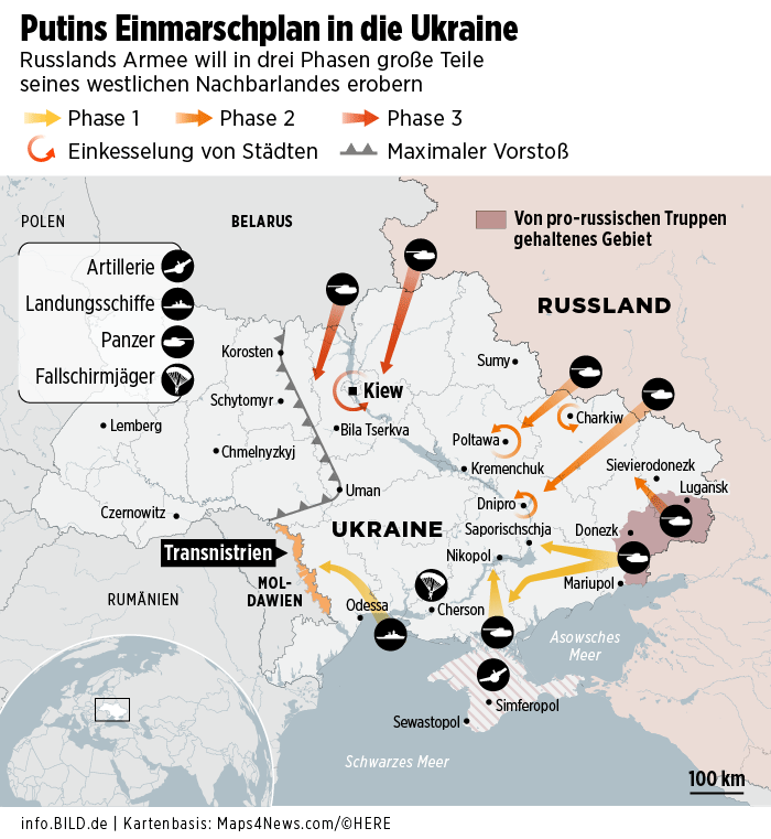 One of examples for the US and British intel ‘leaking’ their information to the mainstream media - in a vain attempt of influencing the politics and the public opinion. In November 2021, the German tabloid Bild has published this map of the plan for the Russian invasion of Ukraine. One can discuss if this or that detail is ‘correct’ - especially because this plan was based on overoptimistic assumptions and the VSRF then failed to realise it - but: the essence is clear and the dependability of information is beyond any doubt.